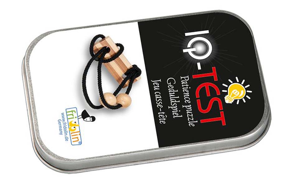 Känner du dig smart? Testa ditt intellekt genom att få loss plattan eller ringen från snörena, vilket är mycket svårare än vad man först tror!Tankepusslet har en förvaringsask i metall.Roligt, utmanande och extremt beroendeframkallande så sätt igång med att utmana dig själv eller någon annan att hitta lösningen till denna tankepussel.Det finns fem svårighetsgrader.